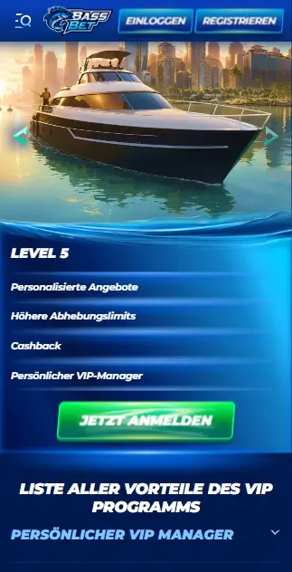 - Go Fishing Gamification: Das Markenzeichen von BassBet mit 30 einzigartigen Angelplätzen, aufgeteilt in 3 Stufen. Verdienen Sie Münzen durch Einzahlungen (5 % des Einzahlungsbetrags) und Wetten (1 Münze pro 10 EUR Einsatz). Fangen Sie gewöhnliche, seltene und epische Fische, um neue Stufen freizuschalten und Bonusgeld, Freispiele und Echtgeldprämien zu gewinnen.