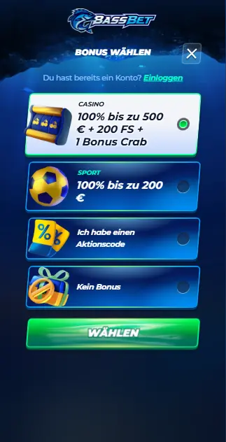 BassBet Casino bietet einen großzügigen Willkommensbonus mit einer Einzahlungsverdopplung und Freispielen: