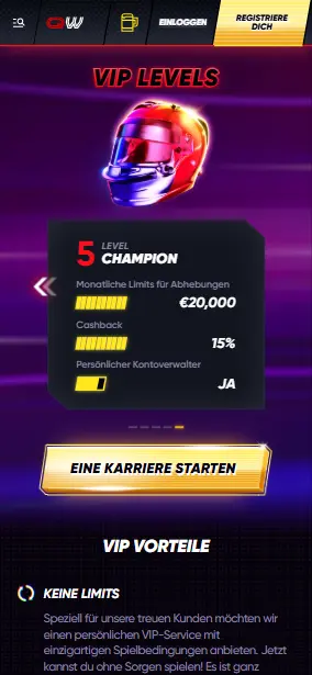 Zu Beginn starten Sie auf Level 1, können aber bis zu Level 5 aufsteigen und sich für den VIP-Club von Quickwin qualifizieren.